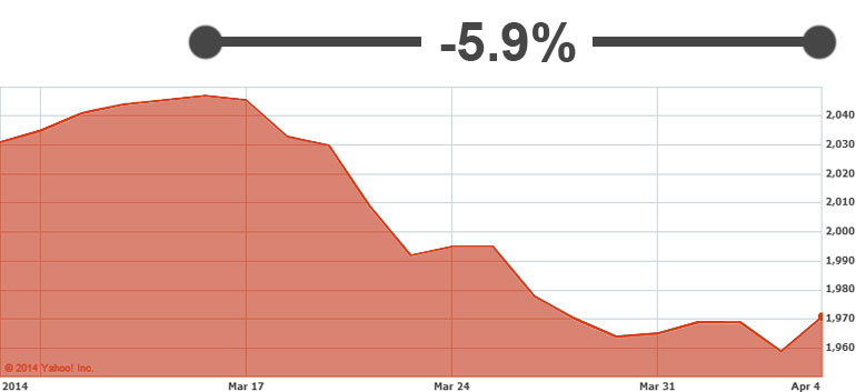 The dollar had been steadily worth more than 2,000 pesos since late January, but began dropping below the 2,000 peso mark mid March.