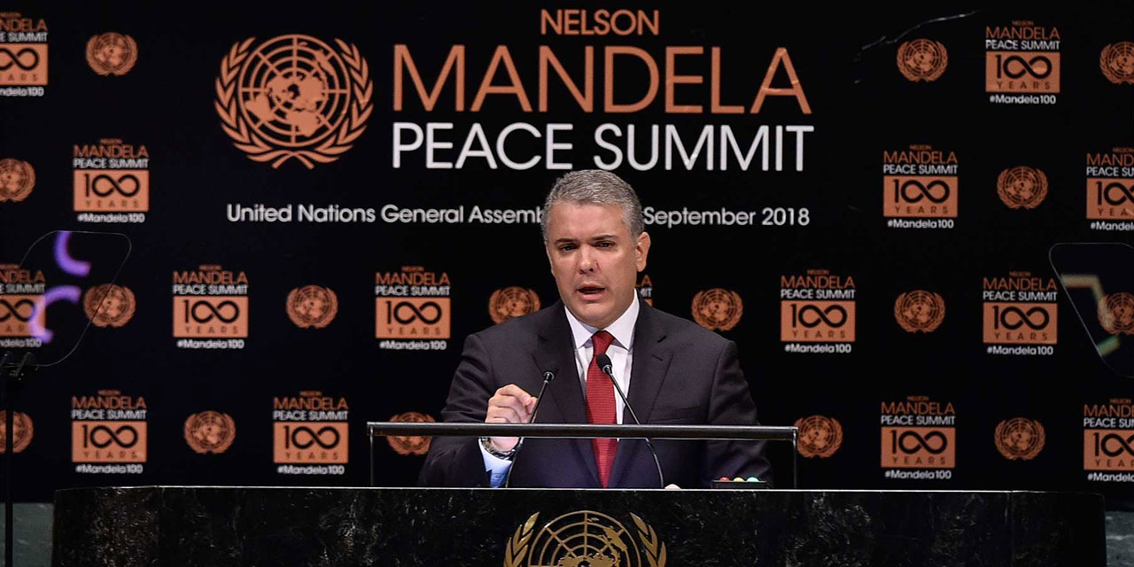 Duque’s debut on the world stage was at the Nelson Mandela Peace Summit where leaders were invited to speak to “renew their commitment to global peace, conflict resolution, peace-building, promotion and protection of human rights and long-term development initiatives as called for by the Secretary-General,” according to the UN.