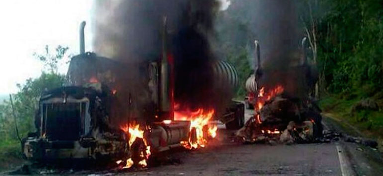 Five semi-trucks carrying oil were set alight in northern Colombia’s Norte de Santander state Wednesday morning, blocking access between the state’s two main cities, according to Colombia’s Blu Radio.