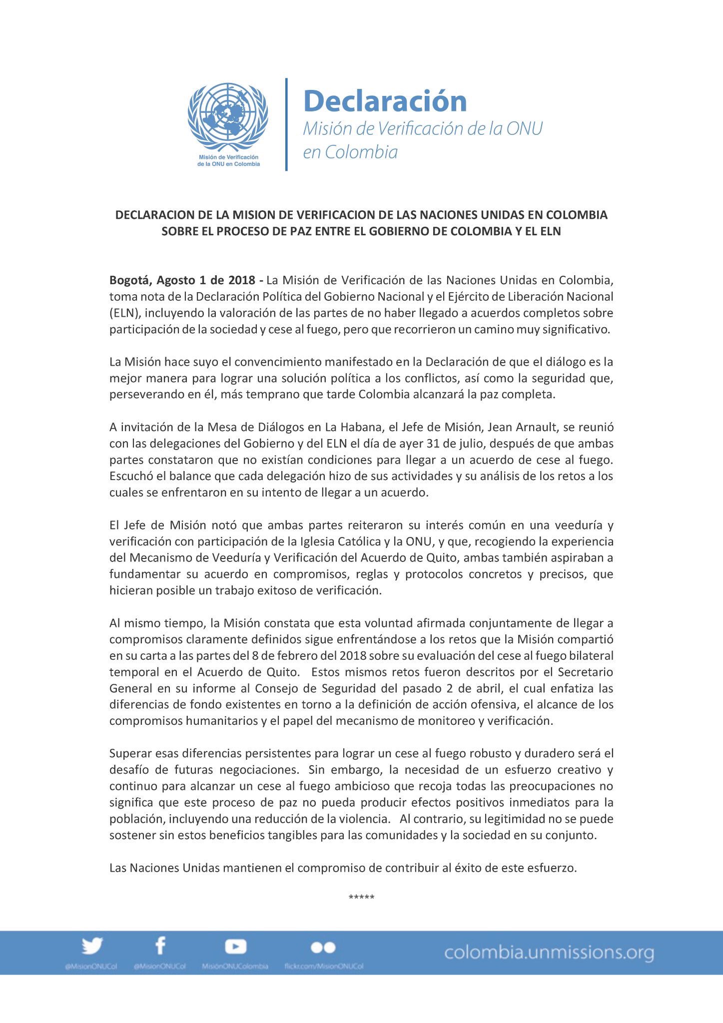 The United Nations said that it “maintains committed to contribute to the success of this effort” to end a seemingly endless war.