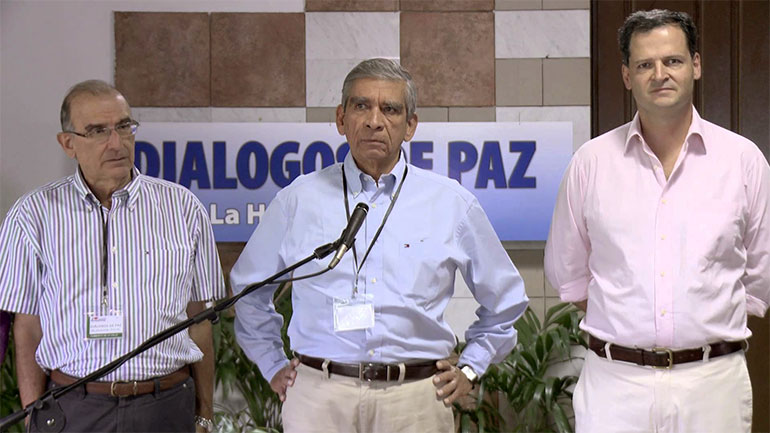 “While Gloria Gomez, our colleague who worked at Asfaddes, General Jorge Enrique Mora, the negotiator who represents the military.., stood up from the table, said something in the ears of [chief government mediator] Humberto de la Calle and [Peace Commissioner] Sergio Jaramillo, and left.”
