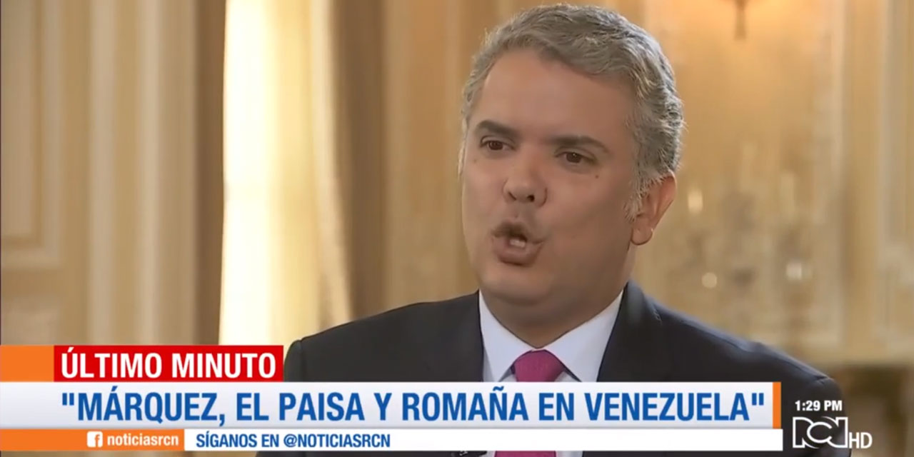 In an interview with conservative television network RCN, Duque claimed that the FARC’s political leader, “Ivan Marquez,” and two feared former mid-level commanders, “El Paisa” and “Romaña,” are Venezuela, but provided no evidence.