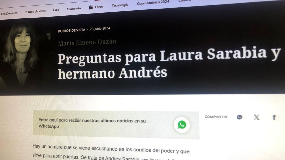 In her column, Duzan suggested that one of Petro’s closest allies, presidential administration chief Laura Sarabia, was peddling her influence with the president through a lobby firm she created with her brother.