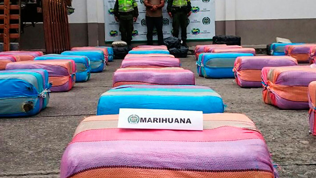 Police in west Colombia seized a shipment of 3,350 kilograms of marijuana allegedly bound for the black markets in Medellin and the coffee region.