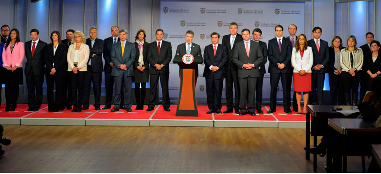 Santos announced the completion of what he called the “cabinet to build peace, education, and equality” on Monday, five days after being sworn in to serve his second term as president, reported national magazine Semana.