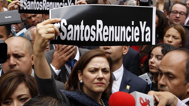 According to House Representative Samuel Hoyos, the unconfirmed claims made by El Tiempo and the president’s son seek to criminalize the legal protests against the government and in particular against ongoing peace talks with leftist FARC and ELN rebels.