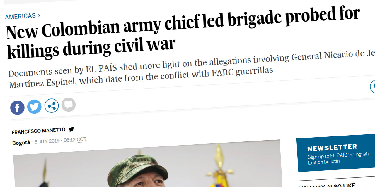 A member of Colombia’s army has demanded the bureau chief of Spanish newspaper El Pais to remove an article on human rights violations allegedly committed under the army chief’s watch.